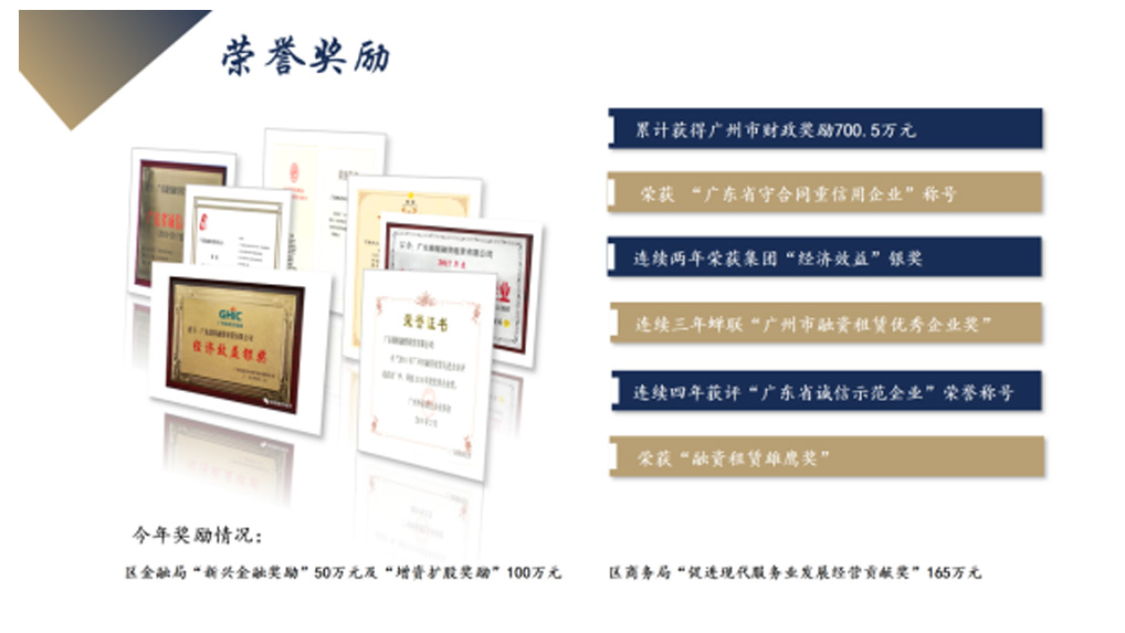高新租賃公司重點(diǎn)拓展裝備事業(yè)、健康事業(yè)、消費(fèi)事業(yè)、公用事業(yè)四大領(lǐng)域,采用直接融資租賃、售后回租、廠商租賃等融資租賃模式深入產(chǎn)業(yè)鏈,為客戶量身訂制融資方案。公司借助高新區(qū)集團(tuán)的品牌、資源和產(chǎn)業(yè)優(yōu)勢(shì),堅(jiān)守金融服務(wù)實(shí)體經(jīng)濟(jì)的本質(zhì),依托廣州開發(fā)區(qū)強(qiáng)大的產(chǎn)業(yè)基礎(chǔ),致力成為華南地區(qū)知名的產(chǎn)業(yè)金融企業(yè)。截至2020年12月末,公司總資產(chǎn)規(guī)模接近30億元,累計(jì)投放融資租賃金額超52億元,高新租賃連續(xù)五年榮獲政府獎(jiǎng)勵(lì)超1000萬元以及“廣州市融資租賃優(yōu)秀企業(yè)”、“廣東省誠(chéng)信示范企業(yè)”等各類獎(jiǎng)項(xiàng)。