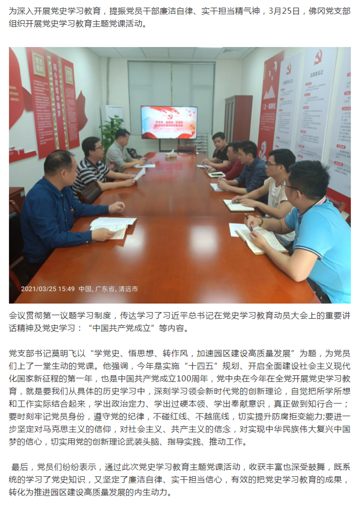 佛岡黨支部掀起黨史學習教育熱潮